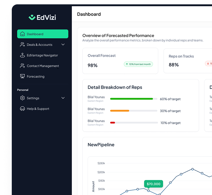 EdVizi’s tailored features help you focus on what matters most: building strong relationships with schools, districts, and education partners.